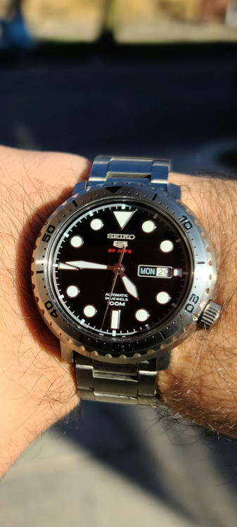 قاب استیل ضد زنگ با بند استیل ضد زنگ. قاب استیل ضد زنگ با قابلیت چرخش یک جهته. صفحه مشکی با عقربههای نقرهای درخشان و نشانگرهای ساعت نقطهای. نشانگرهای دقیقه در اطراف لبه بیرونی. نوع صفحه: آنالوگ. عقربهها و نشانگرهای شبتاب. نمایش روز هفته و تاریخ در موقعیت ساعت ۳. موتور اتوماتیک کالیبر سیکو ۴R۳۶، حاوی ۲۴ جواهر، با سرعت ۲۱۶۰۰ ضربه در ساعت و ذخیره انرژی تقریباً ۴۱ ساعت.